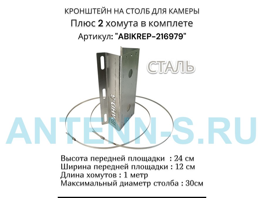 Кронштейн для камеры + 2 хомута, длиной 1 метр, для любых столбов