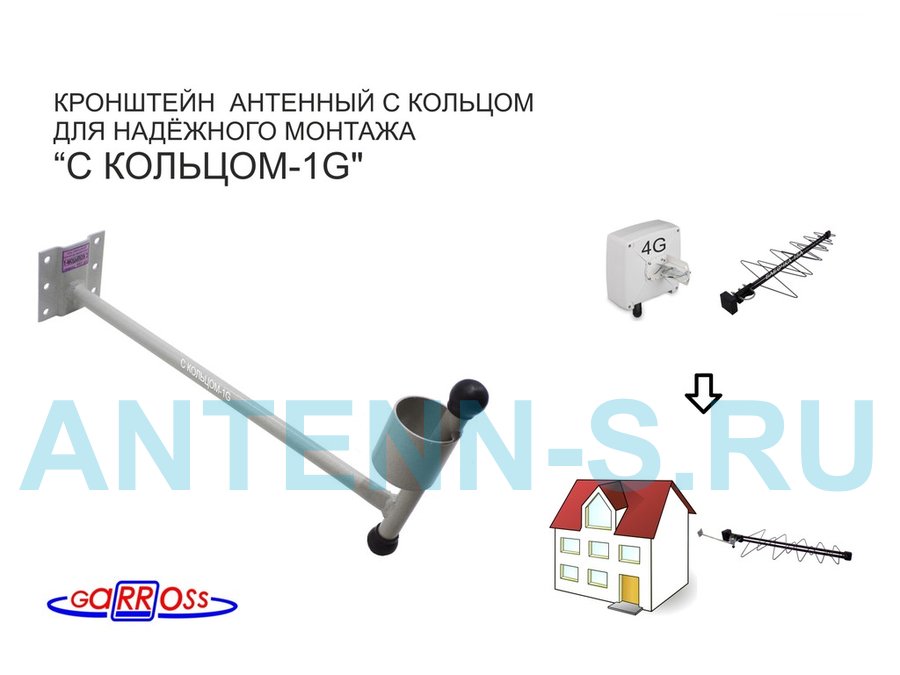 В корзину Купить в 1 клик Кронштейн антенный "С КОЛЬЦОМ-1G" СЕРЫЙ вылет 0,35м; диаметр 50мм (упаковка-80шт)
