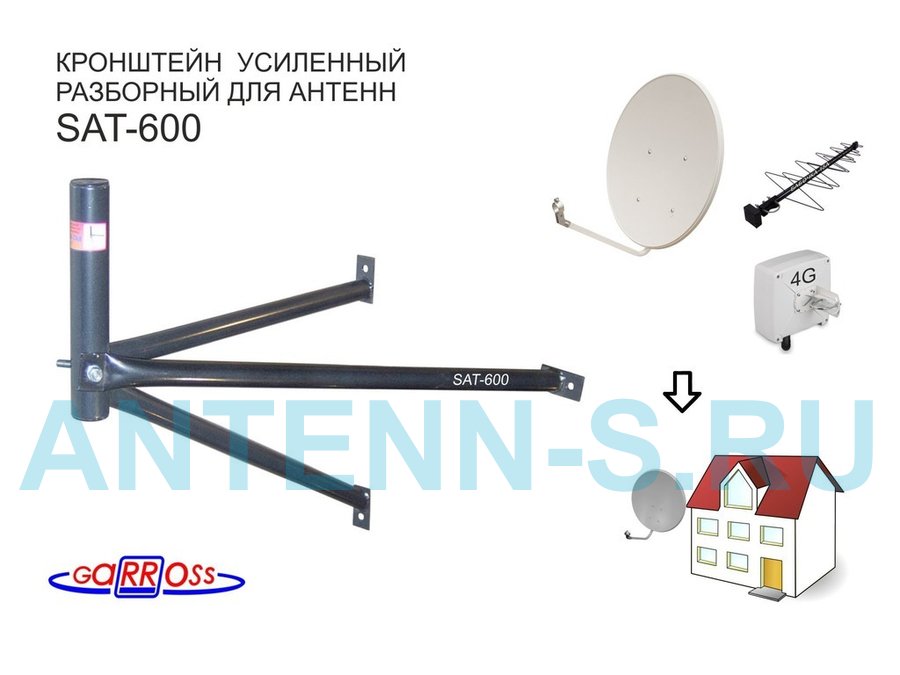 • Кронштейн антенный разборный предназначен для крепления спутниковых тарелок 1,2метра и меньше, антенн эфирных и мобильного интернета к стенам зданий