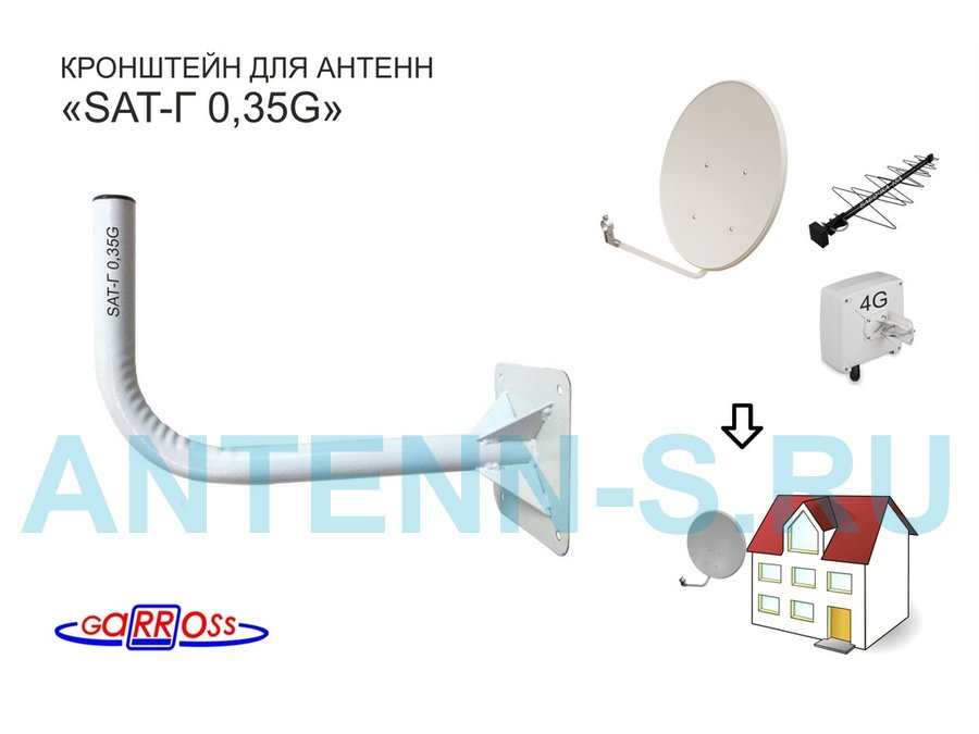 В корзину Купить в 1 клик Кронштейн антенный "SAT-Г 0,35G-18038" СЕРЫЙ для спутниковых и эфирных антенн; вылет 0,35м; 32мм