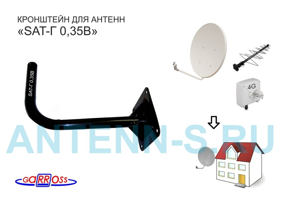 В корзину Купить в 1 клик Кронштейн антенный "SAT-Г 0,35B-9125" ЧЁРНЫЙ для спутниковых и эфирных антенн; вылет 0,35м; 32мм