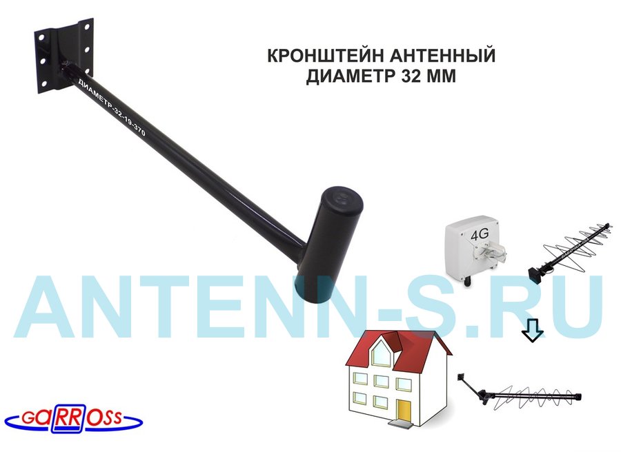 Кронштейн антенный к стене "ДИАМЕТР-32-11432" прочная сталь, цвет черный, вылет 35 см, диаметр 32 мм