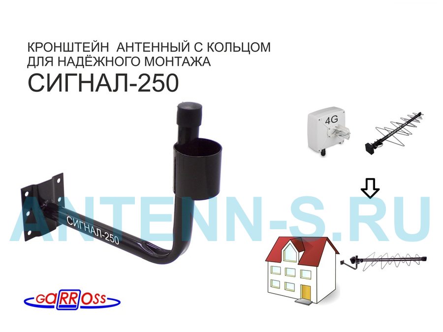 В корзину Купить в 1 клик Кронштейн антенный стальной "СИГНАЛ-250-216134" серый, вылет 0,25 м, труба 22мм с кольцом 50мм