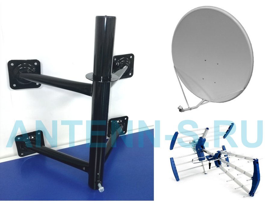 Кронштейн антенный "СОБАККА-1BK" чёрный для спутниковых тарелок от 0,55 до 1,8м, диаметр 51мм, 0,21м