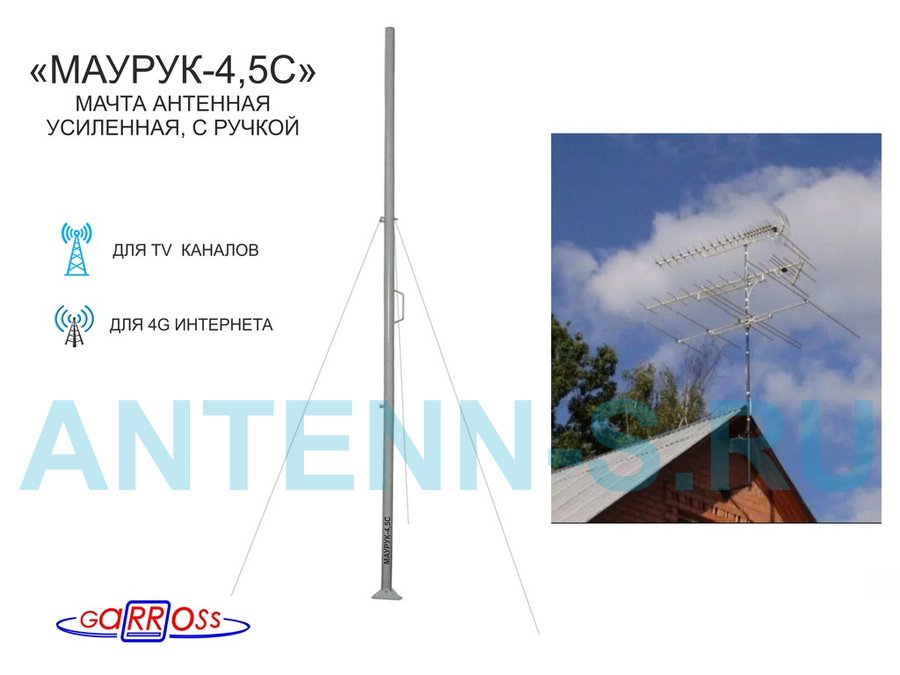 . Для антенн. Мачты на крышу или землю. "МАУРУК" усиленные с ручкой.
