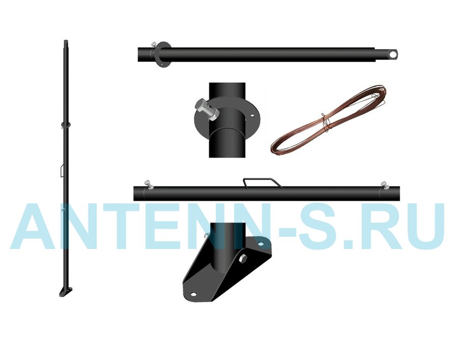 Мачта "МАУРУК-3-11491" для антенн, чёрная усиленная с ручкой, растяжкам и подпятником, 51мм, 3 метра
