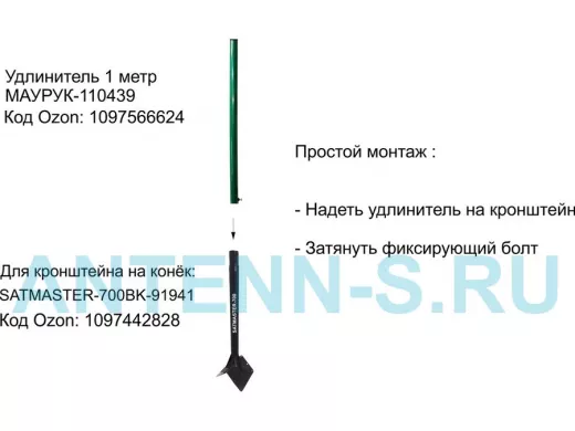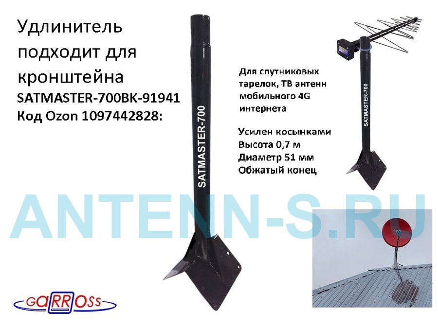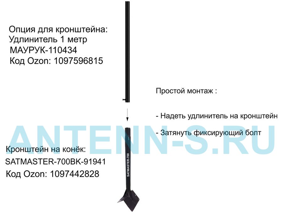 - Подходит для кронштейна на конёк крыши SATMASTER-700BK-91941 и SATMASTER-900BK-122293.