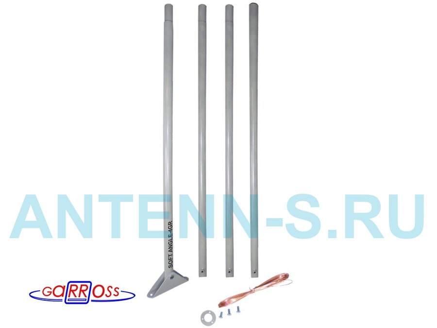 Мачта антенная 4 метра "SOFTANGLE-4GR-123073" серая с растяжками, подпятником, 4 секции, труба 32мм