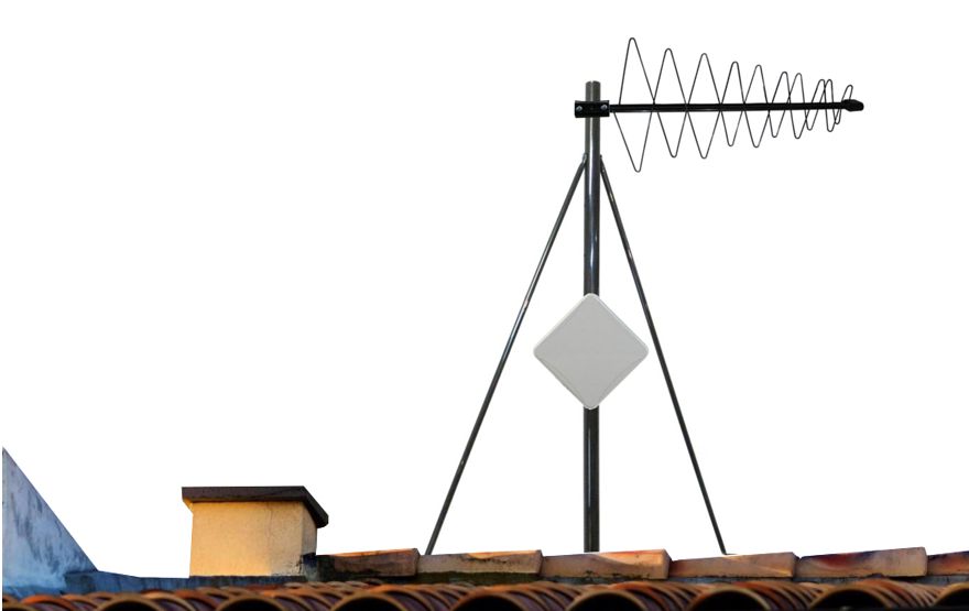 Пример монтажа на одной мачте телевизионной антенны и панельной антенны для беспроводного интернета 3G, 4G