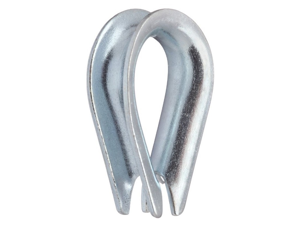 Для долговечности крепления троса используются коушы, они позволяют не изнашиваться тросу в месте крепления к кольцу или уголку: