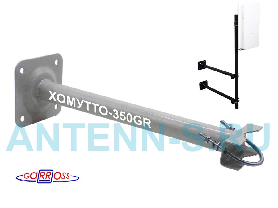 Кронштейн усиленный для мачт "ВЫННОС-500GR-V1-112117" серый, два хомута, вылет 0,5м, 2 отв., до 51мм