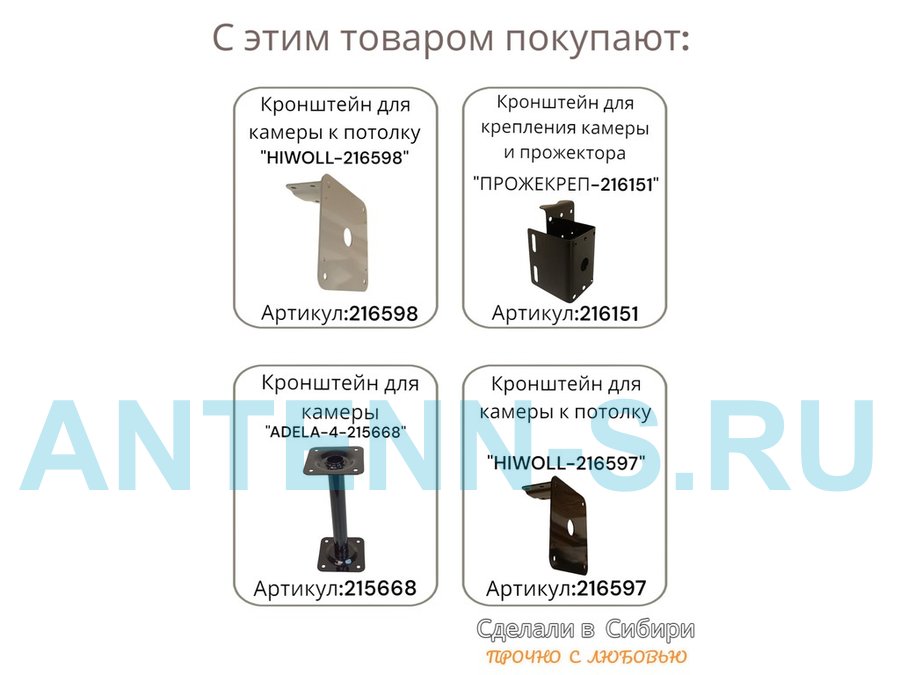 Кронштейн для поворотной камеры к потолку усиленный "HIWOLL-216602" черный, сталь