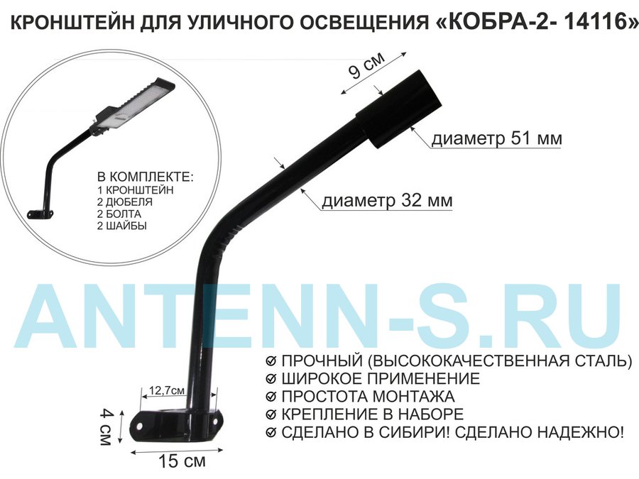 Кронштейн для светильника или прожектора настенный "КОБРА-4-216663"серебристый, стальной,вылет 0,35м