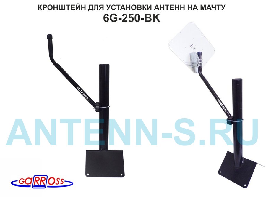 Кронштейн антенный "6G-250-BK" ЧЁРНЫЙ с выносом вверх 0,45м, вылет 0,25м,с хомутом на трубу до 51мм