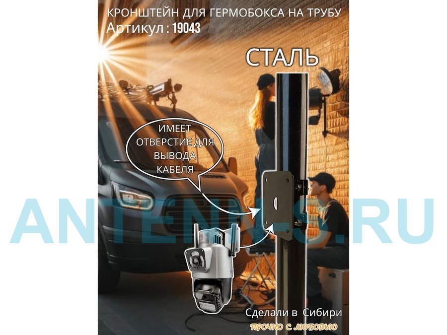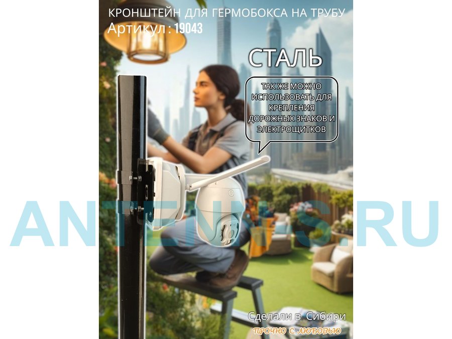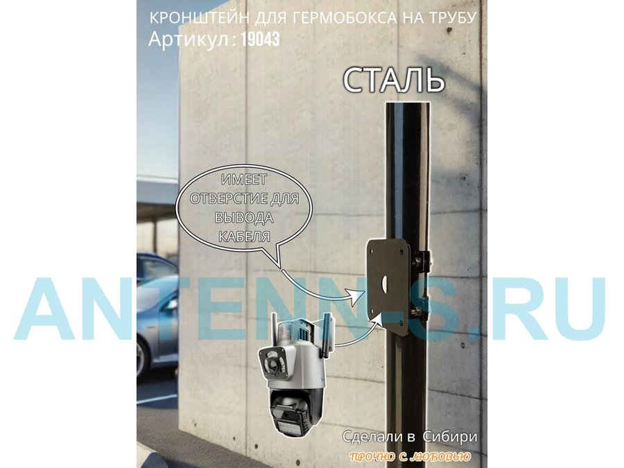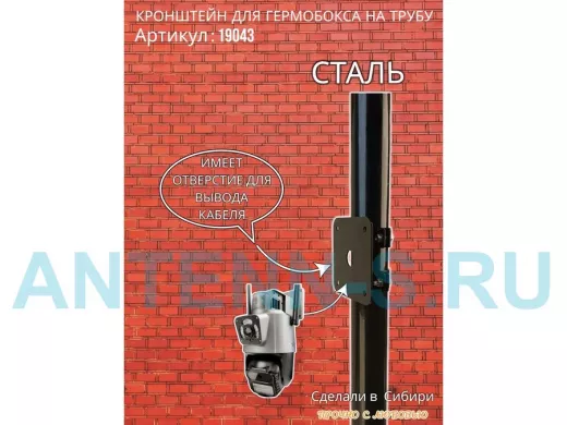 • Кронштейн позволяет быстро зафиксировать гермобокс с видеокамерой на трубу.