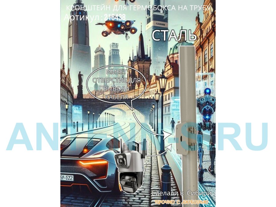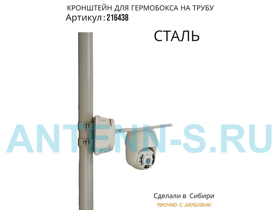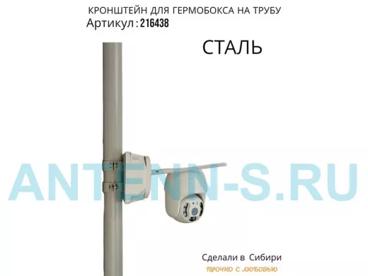 - Кронштейн позволяет быстро зафиксировать гермобокс с видеокамерой на трубу.