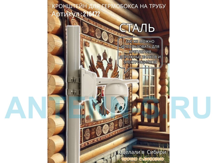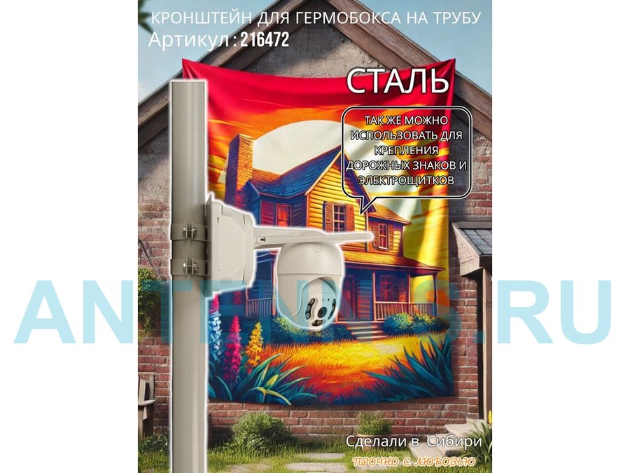 - Универсальный усиленный кронштейн предназначен для крепления гермобоксов,коробок с видеокамерой, дорожных знаков ,электрощитков на трубе диаметром 50мм.