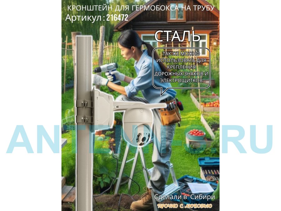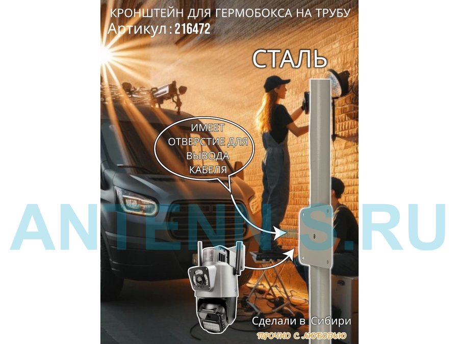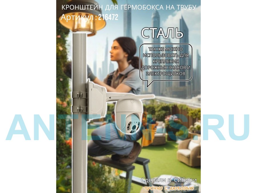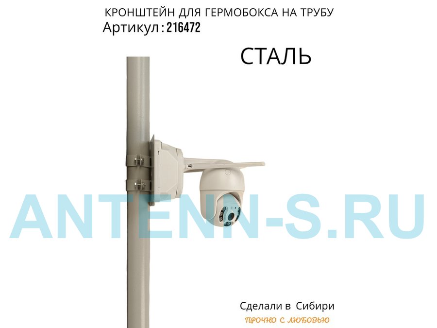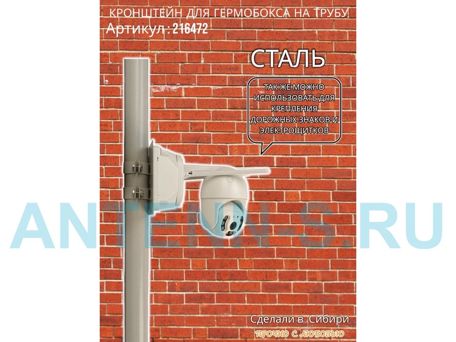 - Кронштейн позволяет быстро зафиксировать гермобокс с видеокамерой на трубу.