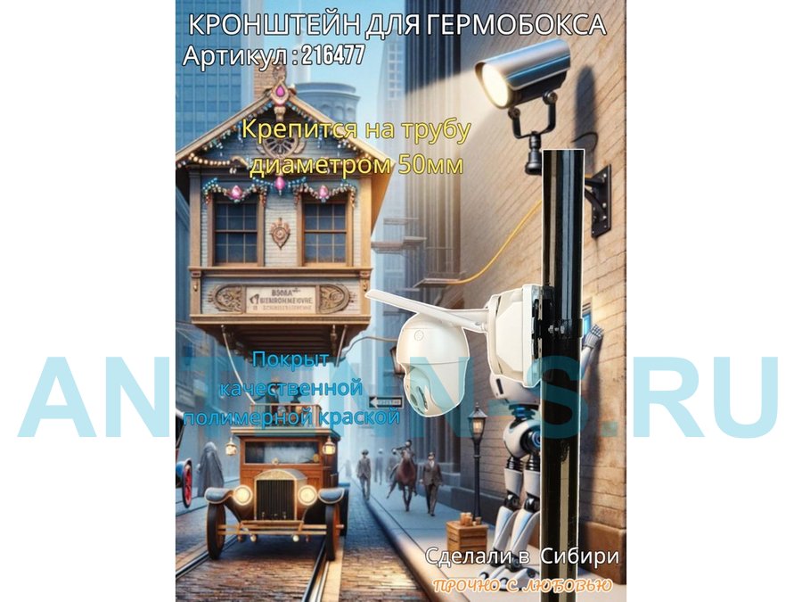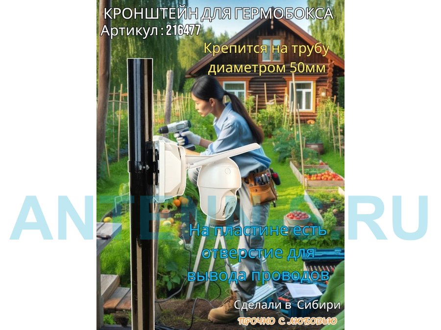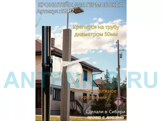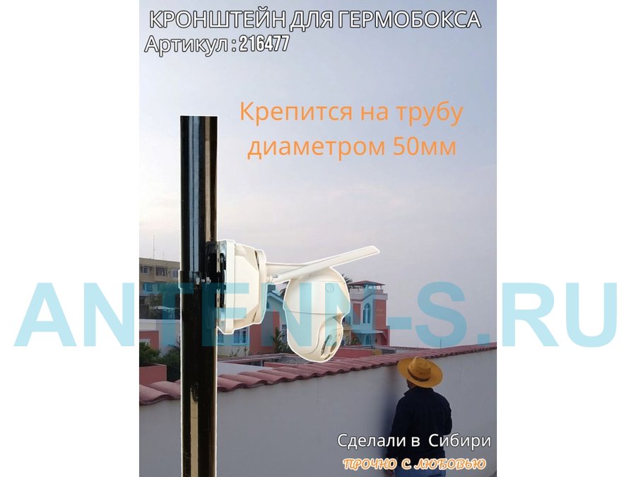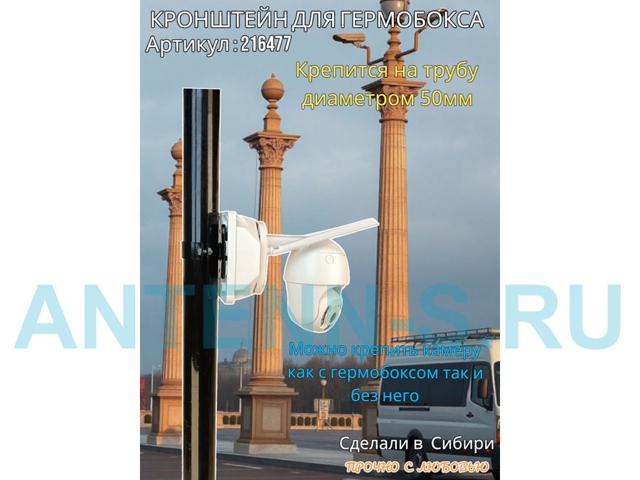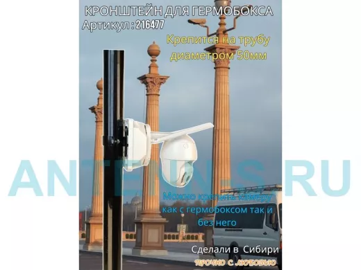 Кронштейн позволяет быстро зафиксировать гермобокс с видеокамерой на трубу.