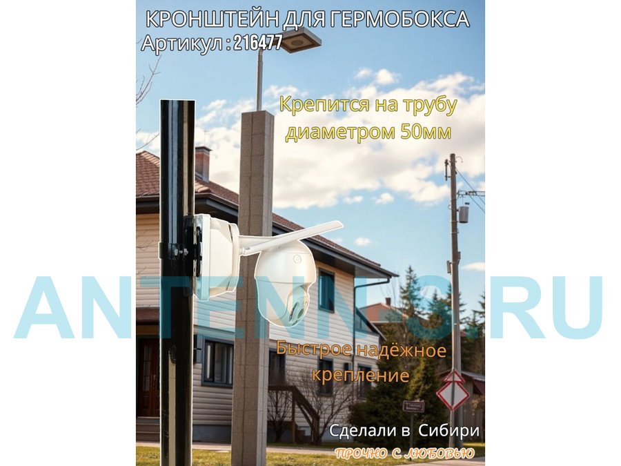 Универсальный усиленный кронштейн предназначен для крепления гермобоксов,коробок с видеокамерой, дорожных знаков , электрических щитков на трубе диаметром 50мм.