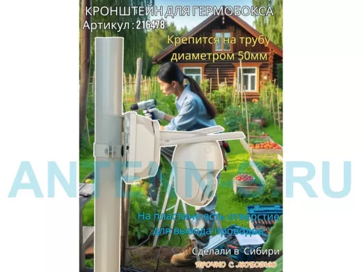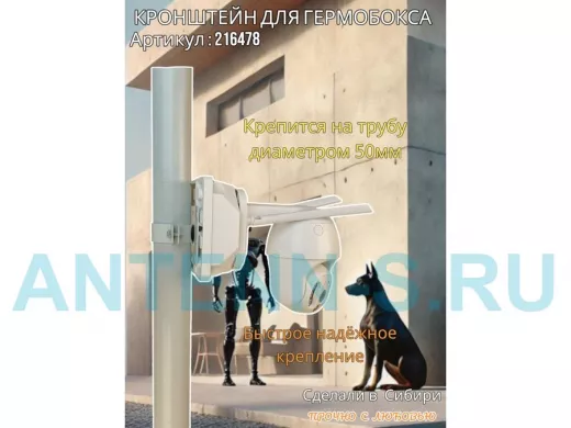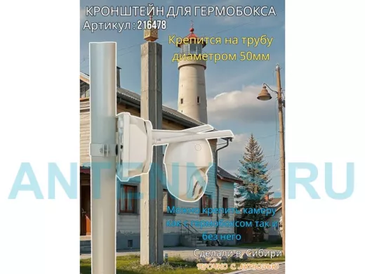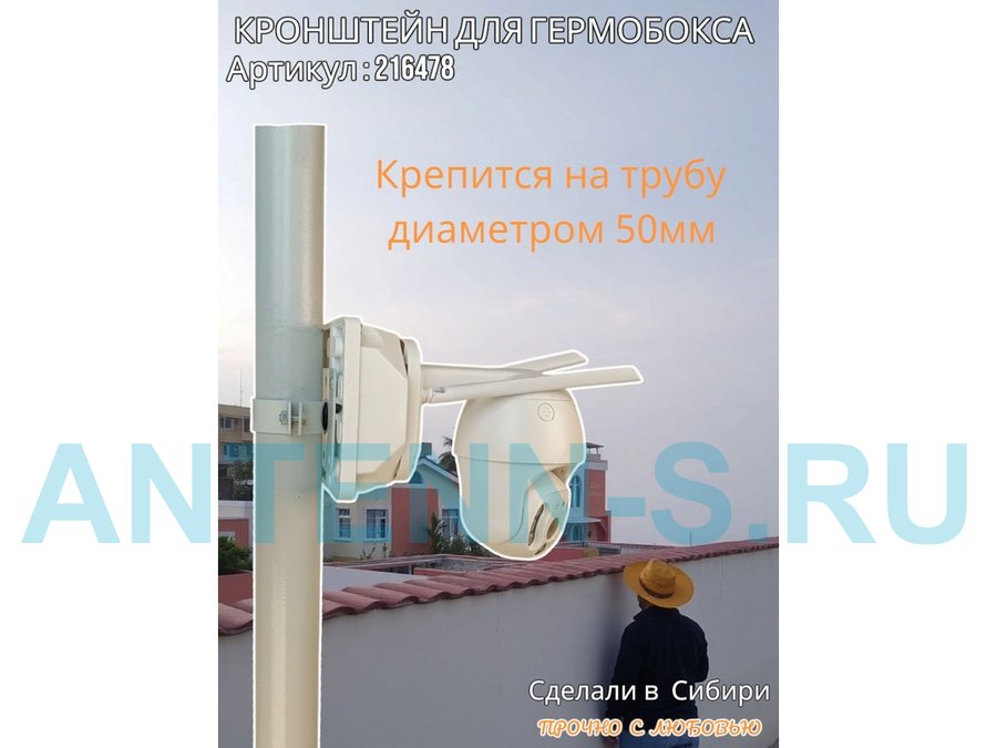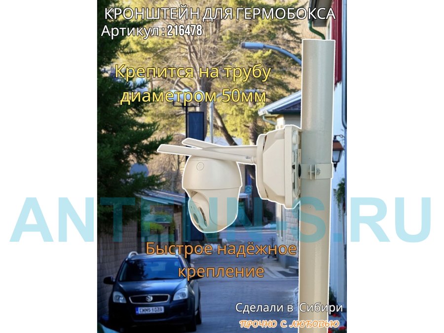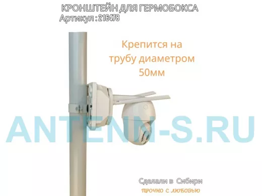 Кронштейн позволяет быстро зафиксировать гермобокс с видеокамерой на трубу.