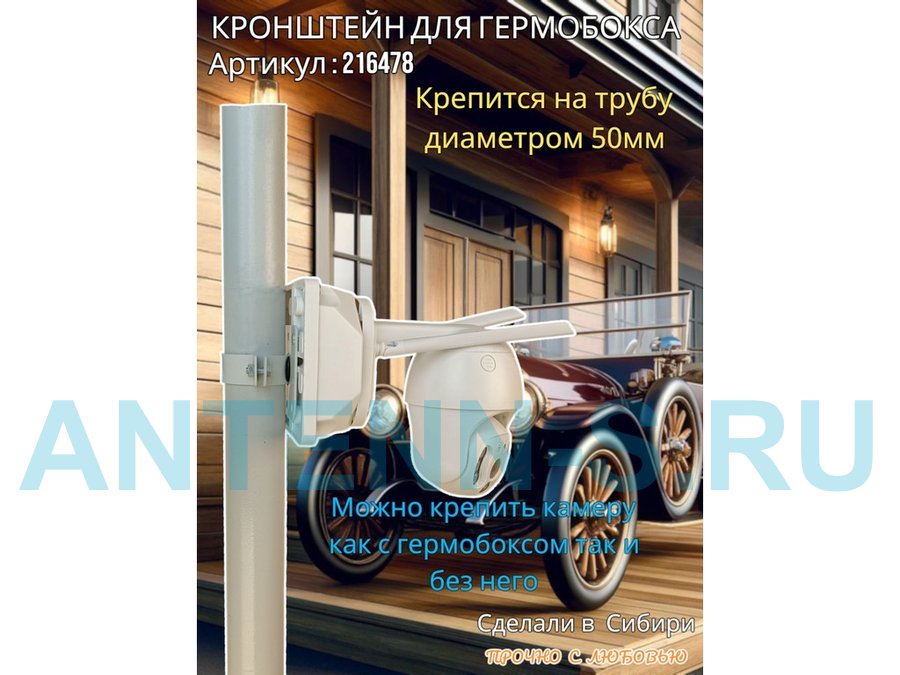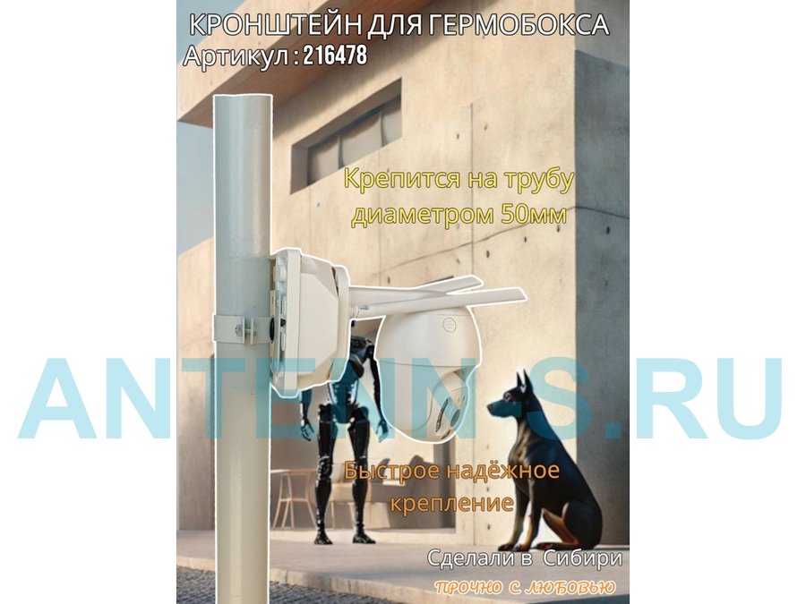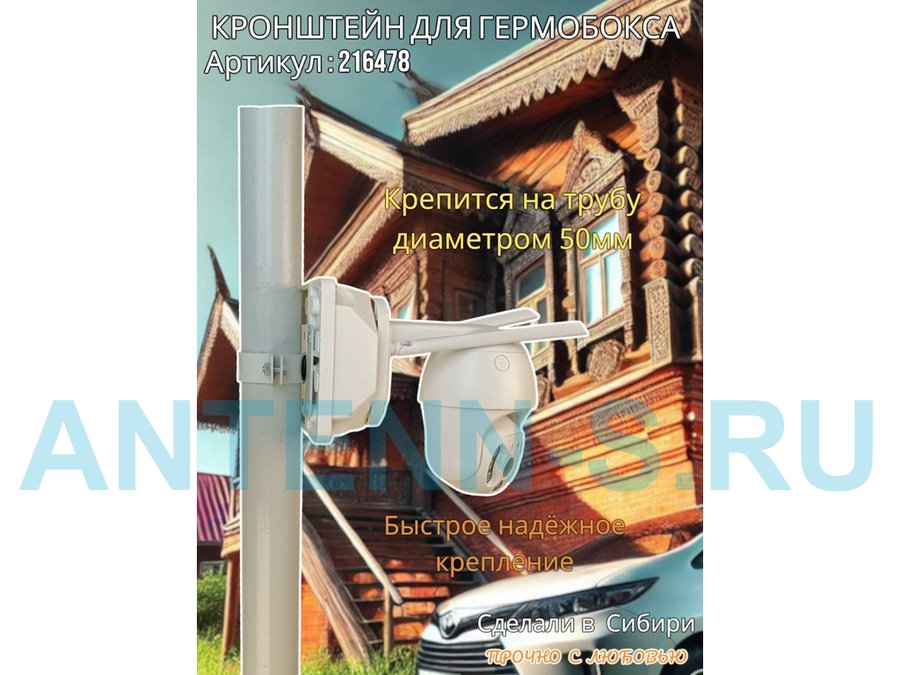 Универсальный усиленный кронштейн предназначен для крепления гермобоксов,коробок с видеокамерой, дорожных знаков , электрических щитков на трубе диаметром 50мм.