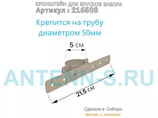 Кронштейн для крепления брусков забора на трубу диаметром 50мм "PODPORA-216508" сталь, цвет серый