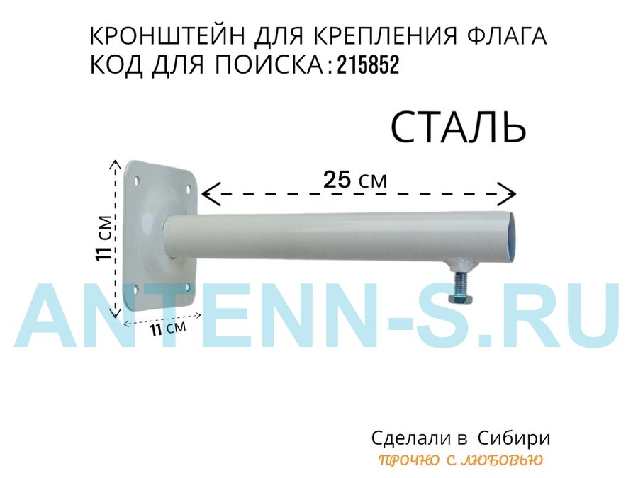 Кронштейн для крепления одного флага на стене угол 90гр вылет 25см "ФЛАГОКРЕП-215852" сталь, белый