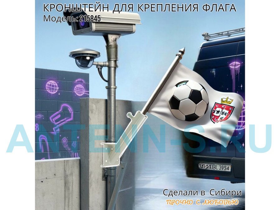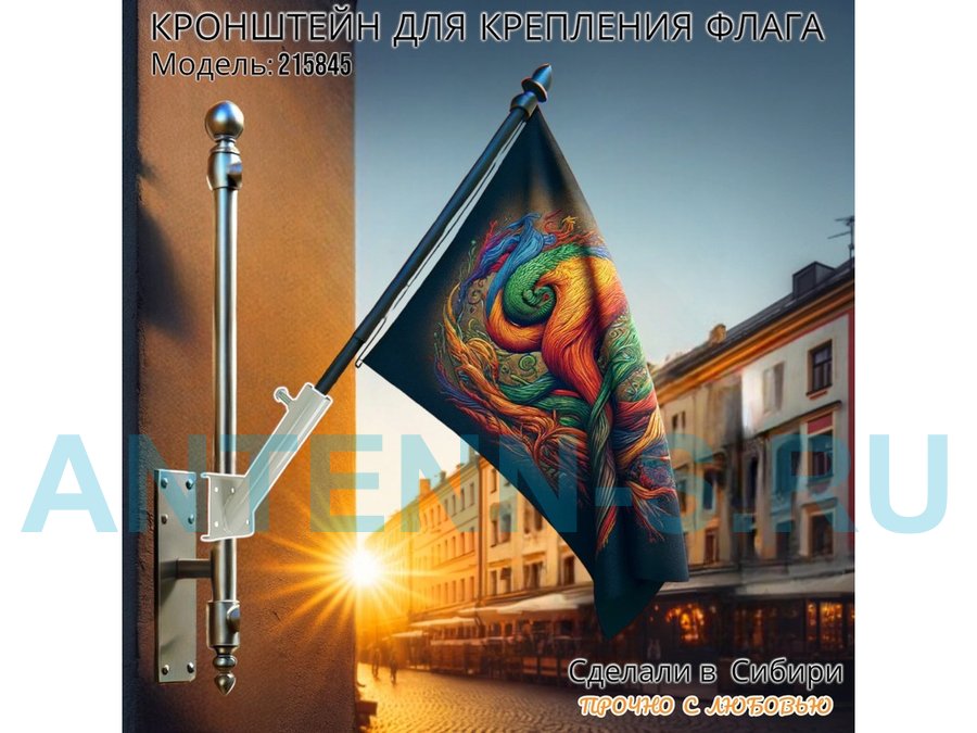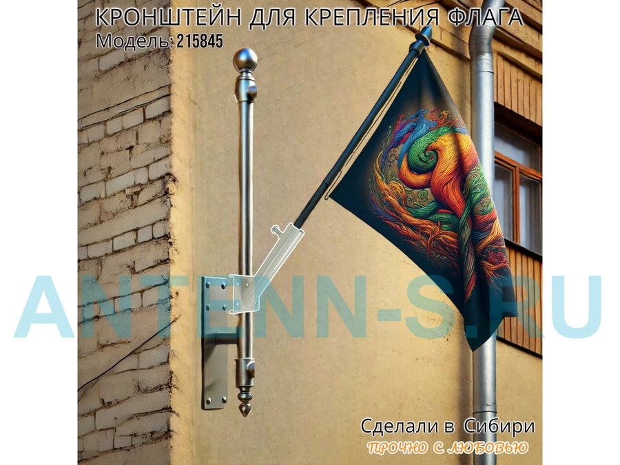 Кронштейн позволяет быстро зафиксировать флаг или кашпо с цветами под углом 45 градусов.