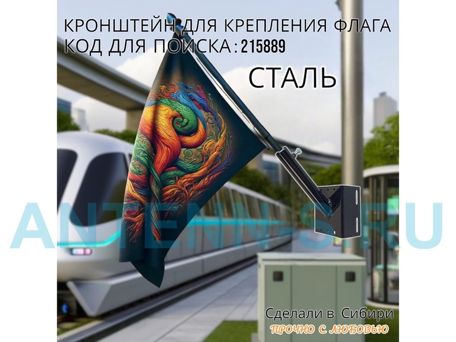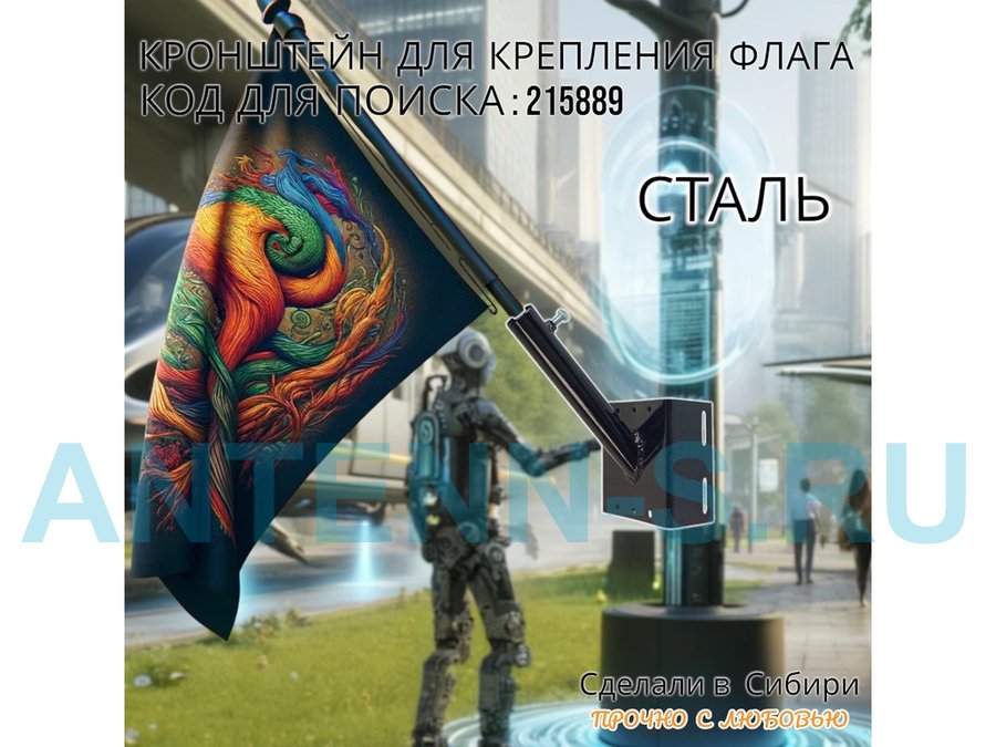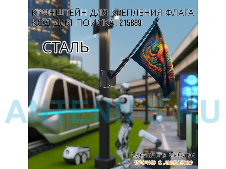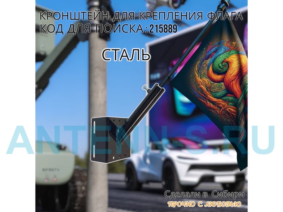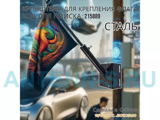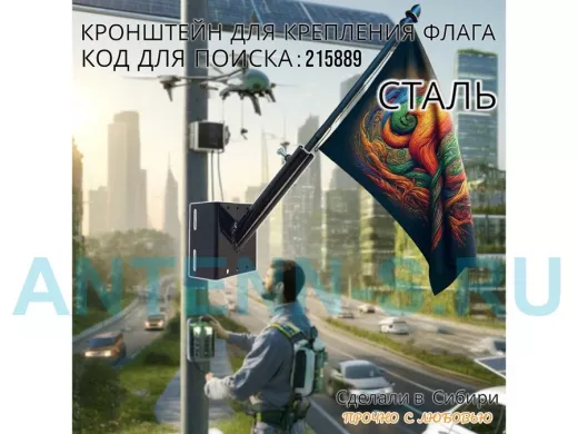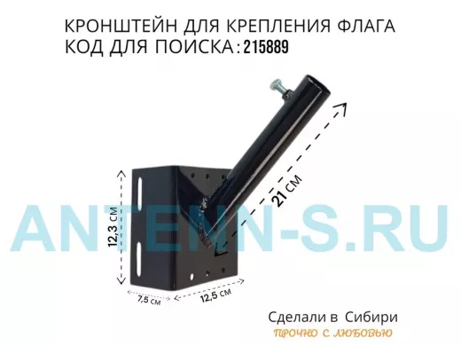 Кронштейн для крепления флага на столб угол 45 градусов "ФЛАГОКРЕП-215889" вылет 21см, сталь,черный