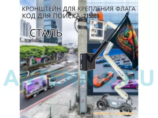 Кронштейн позволяет быстро и прочно зафиксировать флаг или вазон на столбе без его сверления.