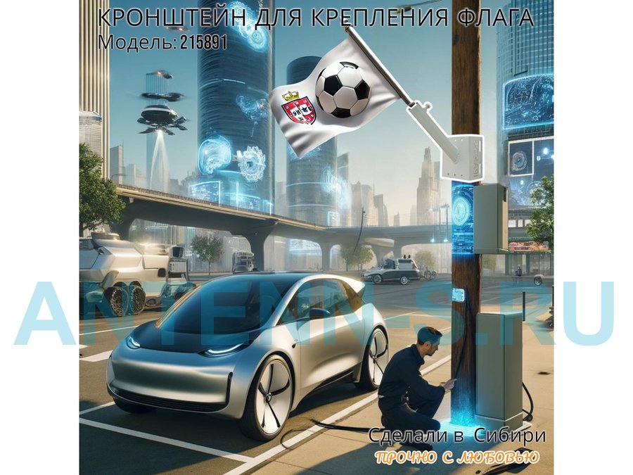 Кронштейн позволяет быстро и прочно зафиксировать флаг или вазон на столбе без его сверления.
