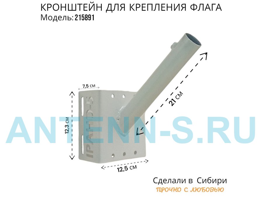 Кронштейн для крепления флага на столб угол 45 градусов "ФЛАГОКРЕП-215891" вылет 21см, сталь, белый