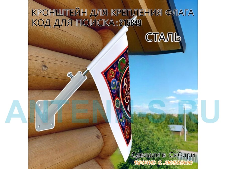 Кронштейн для крепления одного флага на стене угол 45 градусов "ФЛАГОКРЕП-215849" сталь, цвет белый