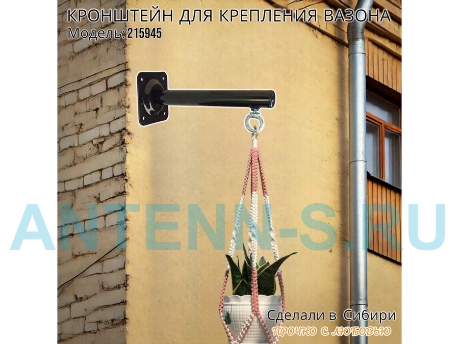 Кронштейн для крепления кашпо, вазона на стене угол 90гр вылет 25см "ПРОСЕКИНО-215945" сталь, черный