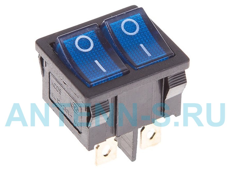 В корзину Купить в 1 клик Выключатель клавишный 250V 6А (6с) ON-OFF синий с подсветкой ДВОЙНОЙ Mini REXANT