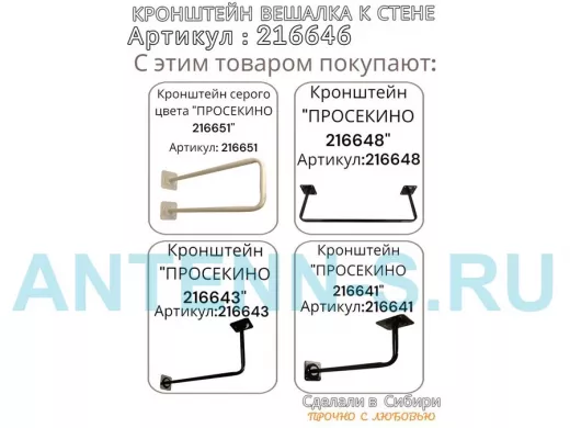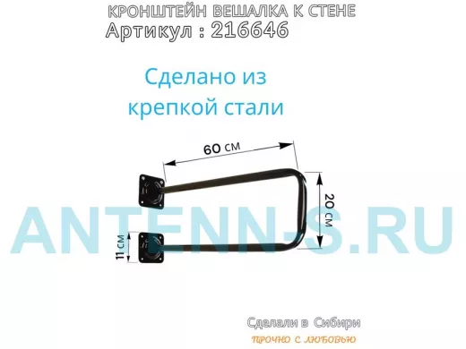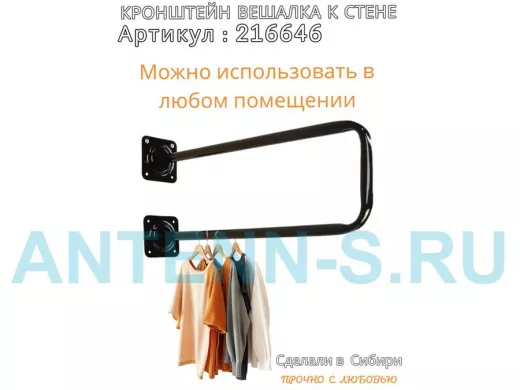 Кронштейн для плечиков с одеждой, вешалка к стене 60 х 20 см "ПРОСЕКИНО 216646" чёрный, 22мм