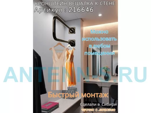 Кронштейн для плечиков с одеждой крепится в углу гардеробной или комнаты, также может крепиться к потолку и стене.