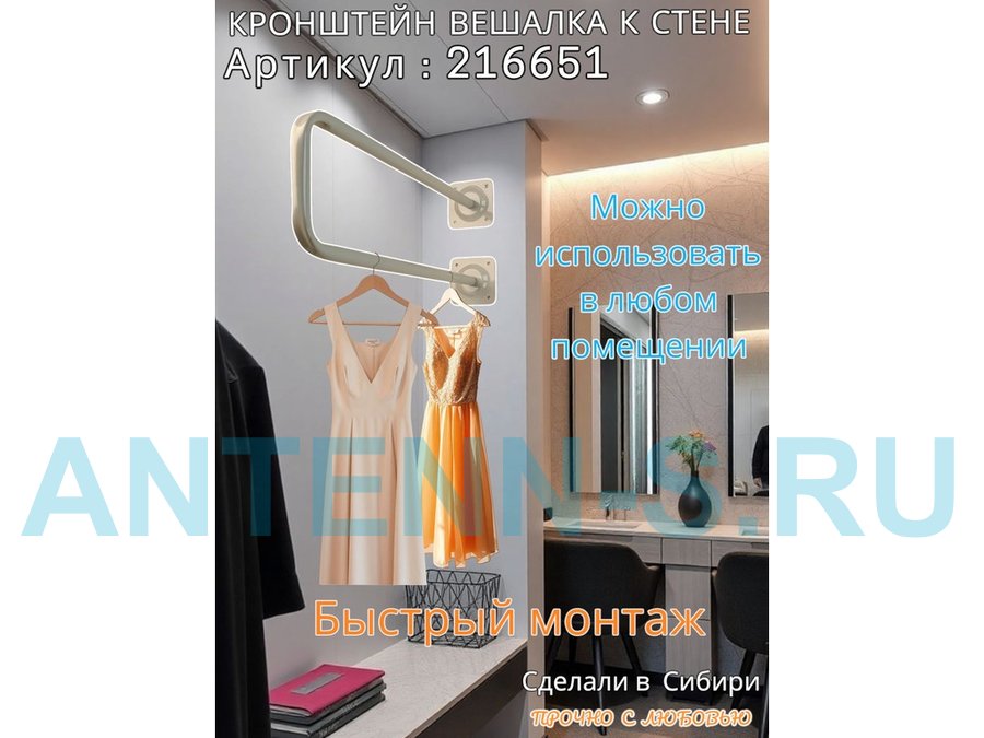 Кронштейн для плечиков с одеждой крепится в углу гардеробной или комнаты, также может крепиться к потолку и стене.