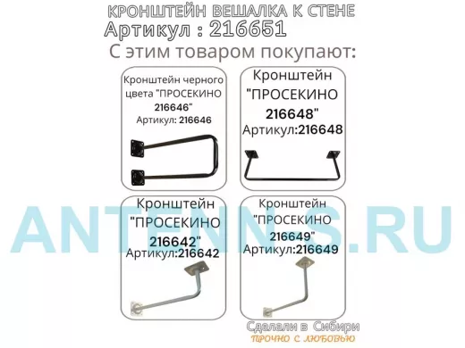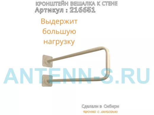 Кронштейн для плечиков с одеждой, вешалка к стене 60 х 20 см "ПРОСЕКИНО 216651" серый, 22мм