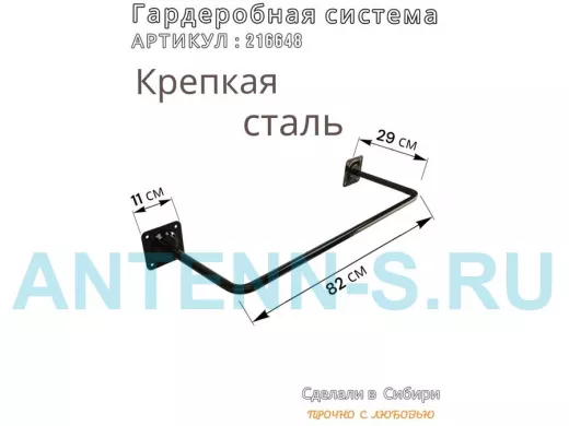 Кронштейн для плечиков с одеждой, вешалка к стене 82 х 29 см "ПРОСЕКИНО 216648" чёрный, 22мм