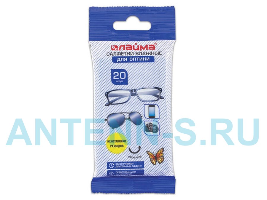 В корзину Купить в 1 клик Салфетки влажные "ДЛЯ ОПТИКИ (очки, объективы)", компактная упаковка, 20 штук