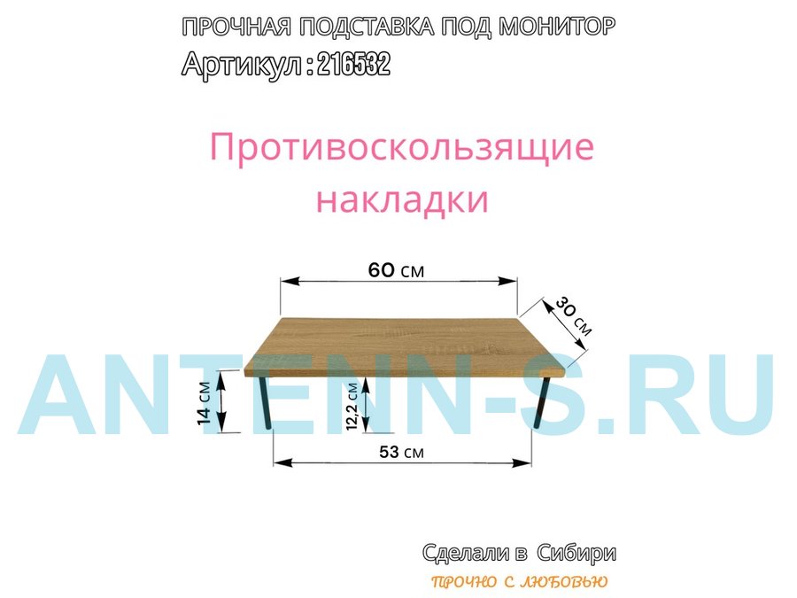Подставка под монитор на стол 60х30см высота 14см "ABBIKUS-216532" дуб сонома, черные ножки