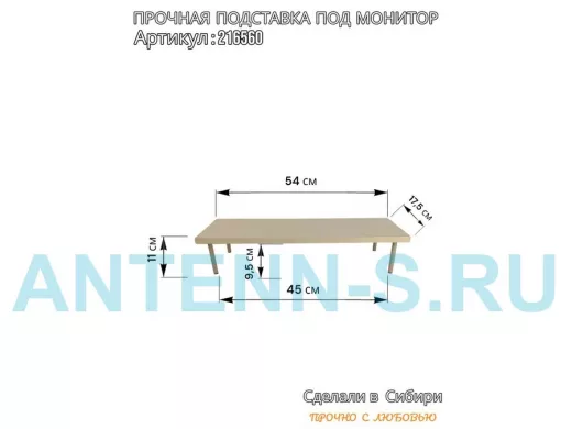 Подставка под монитор на стол 54х17,5см высота 11см, сосна выбеленная "ABBIKUS-216560" серые ножки