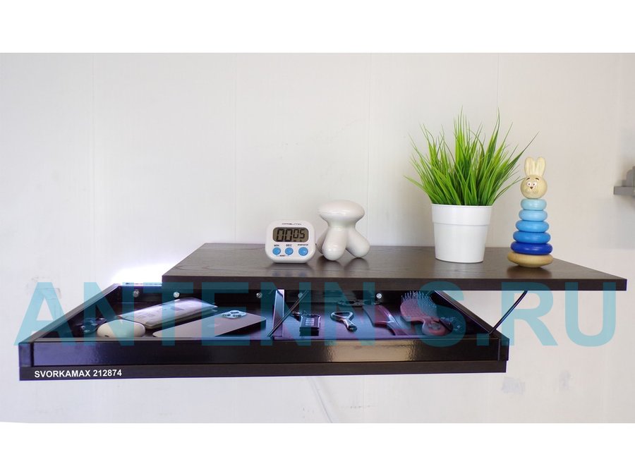 Парящая полка скрытого крепления с подсветкой и тайником, черный "SVORKAMAX 212874" 60х30 см, венге