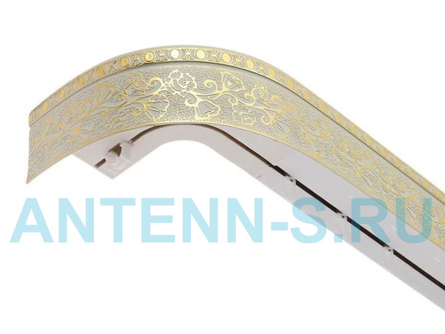 В корзину Купить в 1 клик 350см карниз КРУЖЕВО ЗОЛОТО БЕЛЫЙ 2х рядный с декор. планкой 70мм в индивид. упаковке. ультракомпакт