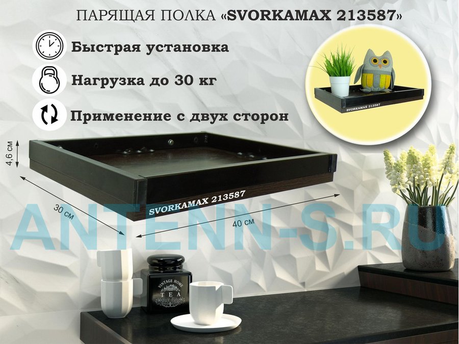 В корзину Купить в 1 клик Парящая полка скрытого крепления, бортики из металла , черный "SVORKAMAX 213587" 30х40 см, венге