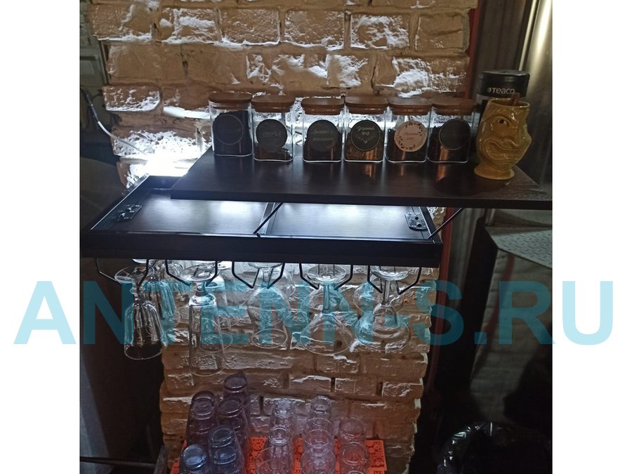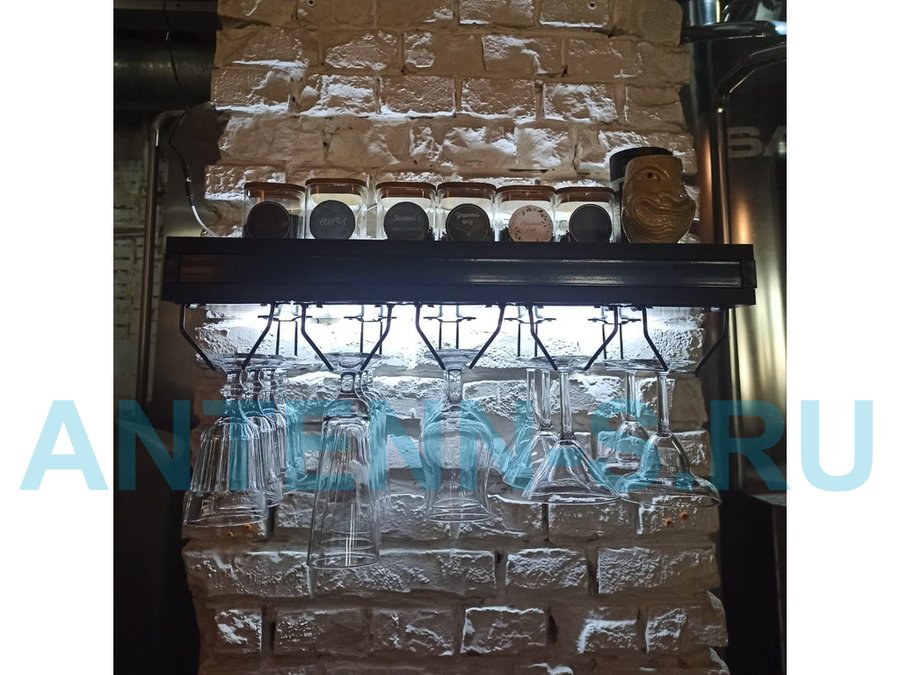 Парящая полка с подсветкой, тайником и держателями бокалов, черный "SVORKAMAX 213666" 60х30см, венге