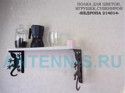 Полка для цветов, игрушек,сувениров "КЕДРОПА-214014 гекон" размер 15х60х24 см, сосна выбеленая