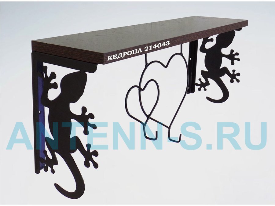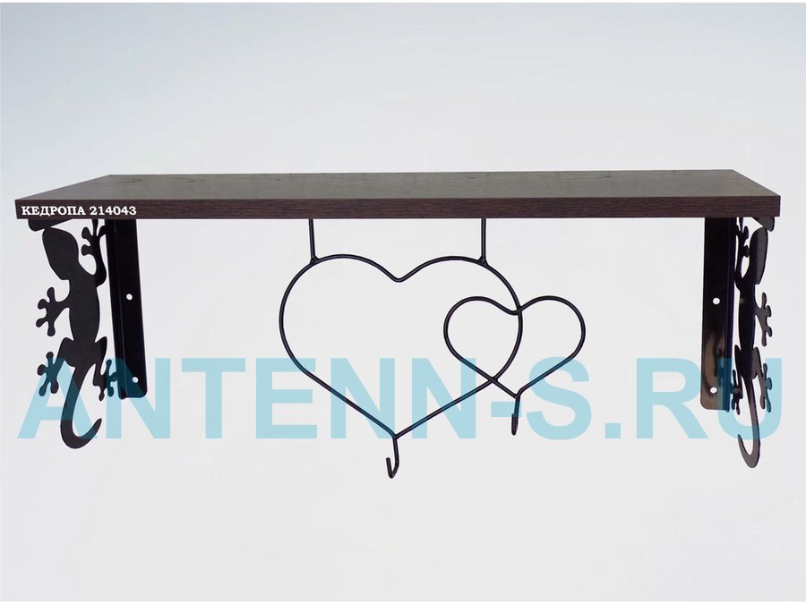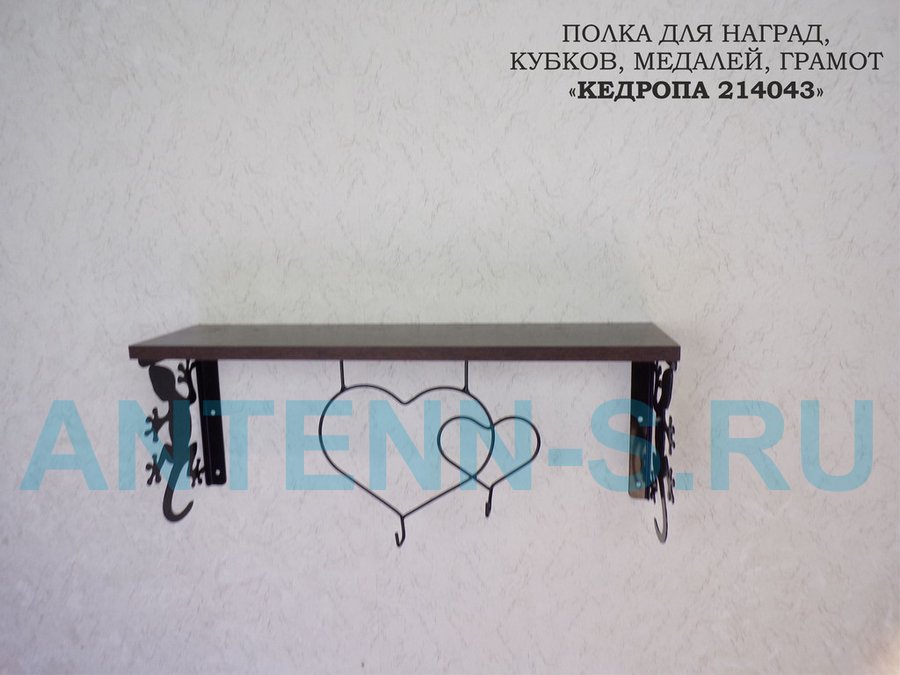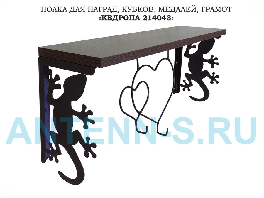 Полка для наград, кубков, медалей, грамот "КЕДРОПА-214043 гекон" размер 15х60х24 см, венге с сердцем